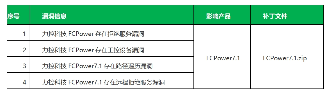2023年至2024年,国家信息安全漏洞共享平台(CNVD)与工业和信息化部网络安全威胁和漏洞信息共享平台工业控制产品安全漏洞专业库(NVDB平台CICSVD漏洞专业库)通报我公司产品电力版组态软件FCPower的漏洞信息,我公司高度重视产品安全,积极完成相关漏洞的修复工作,并发布相应补丁程序。现对截止目前出现的漏洞进行整理,详细漏洞信息如下所示: